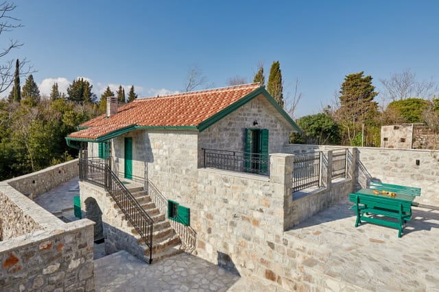 Околността на къщата впечатлява с просторен двор, застлан с каменни плочи, където се намират барбекю, лятна кухня и басейн. Разположена в очарователен район, само на 3 км от ексклузивния курорт Луштица, тя е идеално място за отдих от ежедневието. Благодарение на близостта до пясъчния плаж Blue Horizons и краткото разстояние до летището и близките градове като Тиват и Котор, това е перфектно предложение за търсещите спокойствие и удобство.