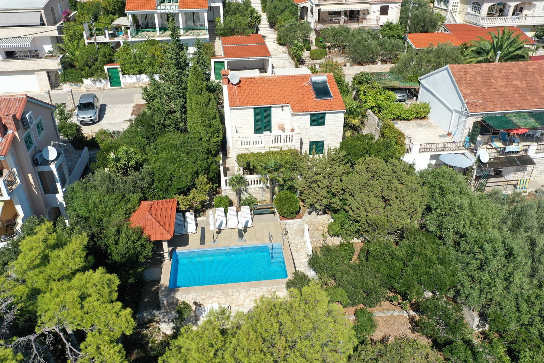 Архитектурата се връща към класиката на региона, като същевременно е функционална и удобна. Уютното разположение в залив позволява да се наслаждавате на спокойна атмосфера през цялата година. Всяка от стаите предлага достъп до естествена светлина, а внимателно разположените прозорци се отварят към градината или морето. Къщата е завършена с висок стандарт, с внимание към детайла и комфорта на обитателите. Територията на имота позволява планиране на пространство за лятна кухня, джакузи или малък басейн. Безпроблемният достъп с автомобил и удобното достигане до крайбрежната линия правят имота практичен избор. Близостта до очарователни плажове прави всяка минута прекарана на острова незабравима. Имотът е отличен за постоянно живеене, сезонна почивка или туристическа инвестиция.