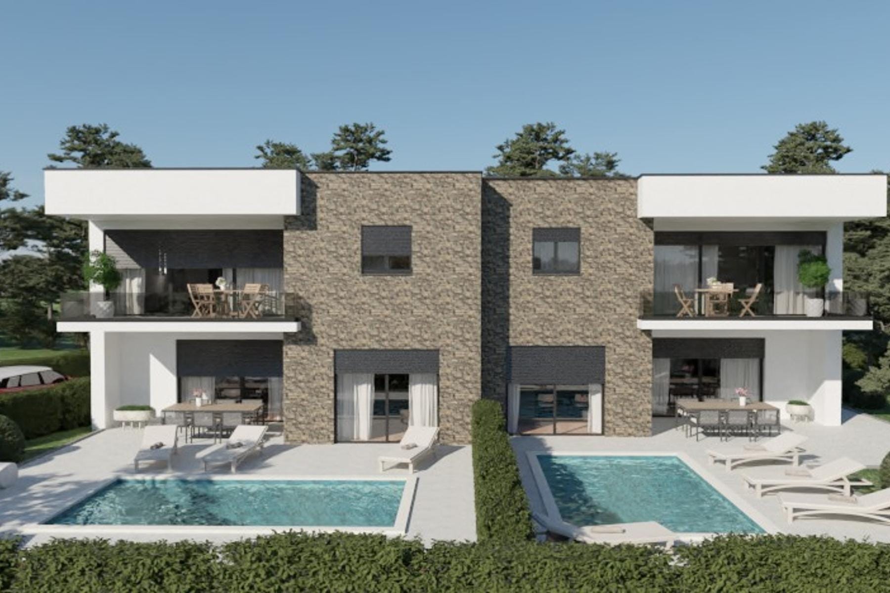 В живописния град Кралевица, разположен на Адриатическо море, се изгражда модерна къща с площ от 151 м². Този имот се отличава с тиха локация, която осигурява спокойствие и комфортен живот близо до морето. Къщата е част от луксозен комплекс вили, които съчетават елегантност и функционалност. Всеки корпус се състои от два независими апартамента, което дава възможност за живеене на по-голямо семейство или инвестиция под наем.