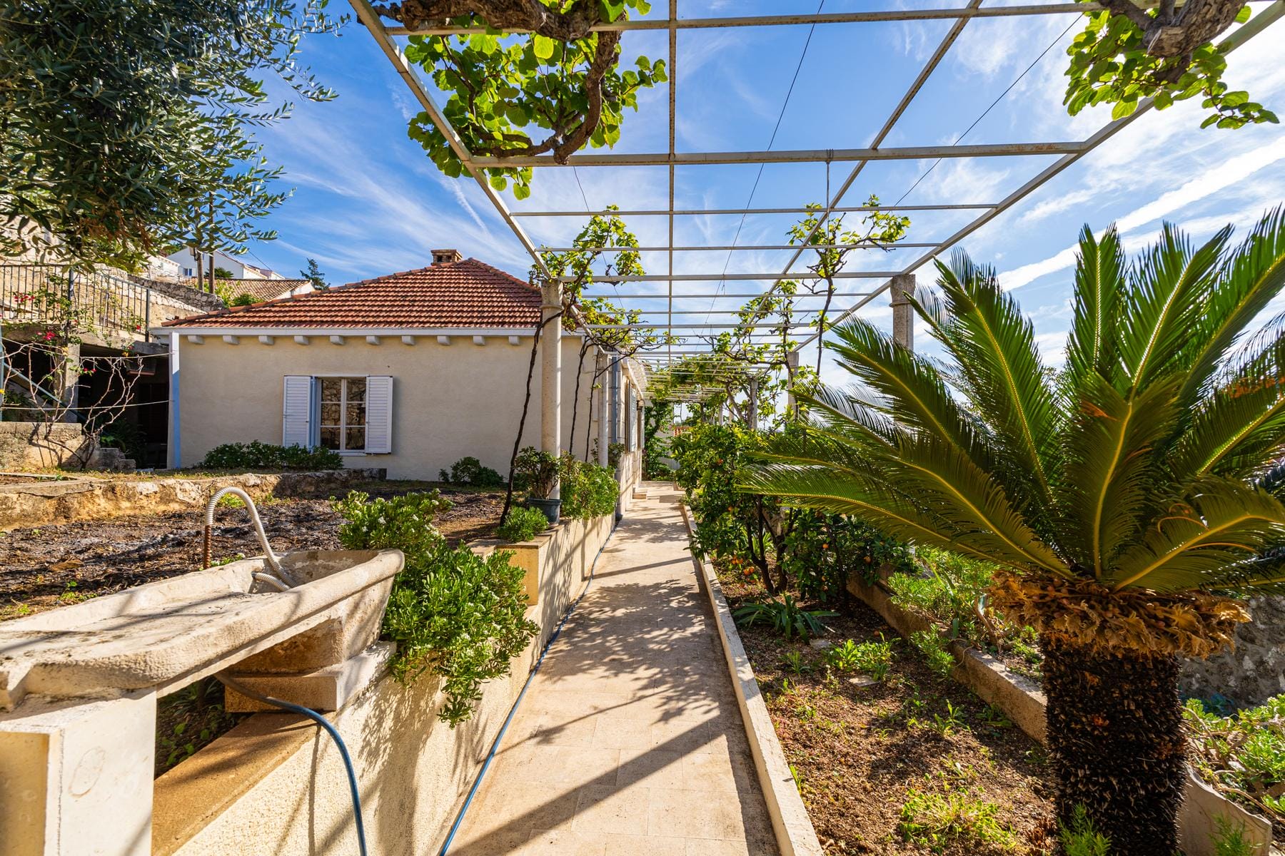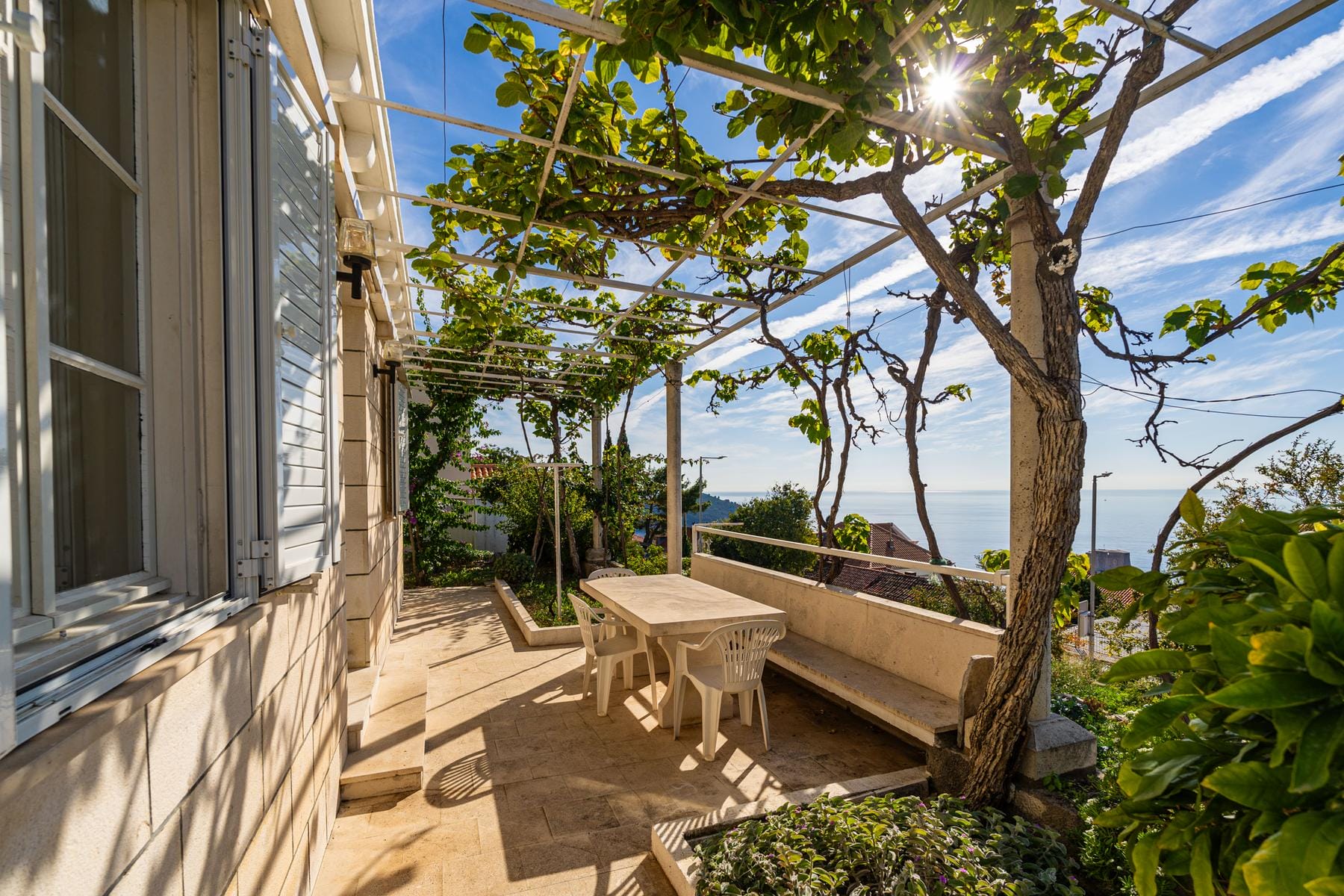 Представеният имот е изключителна каменна къща, разположена в един от най-красивите градове на Хърватия – Дубровник. Къщата с обща площ от 160 м² се намира на парцел с размер 365 м², който включва просторна градина. Този имот се отличава с неповторима атмосфера и великолепна гледка към морето и историческата крепост Ловриенац. Разположена далеч от шума, с достъп само пеша, тя представлява идеален оазис на спокойствие и комфорт.