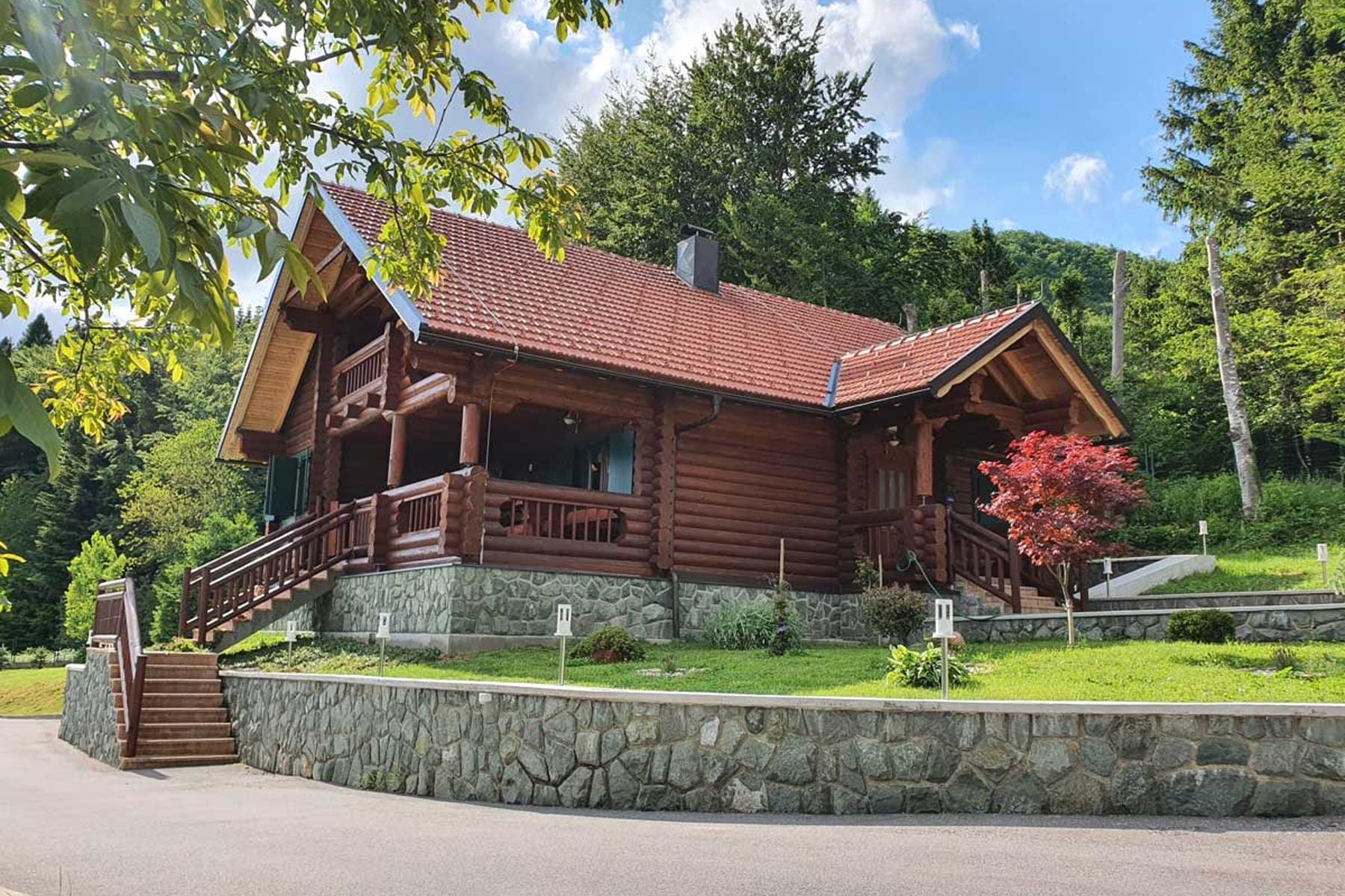 Този изключителен имот се намира в спокойно място близо до село Равна Гора, в близост до град Скрад. Дървената къща е разположена на обширен парцел с площ над 5400 м², осигуряващ тишина и пълна уединеност. Атмосферата, благоприятстваща релаксацията, се създава благодарение на разположението сред гори и ливади, с живописна гледка към околните планини.