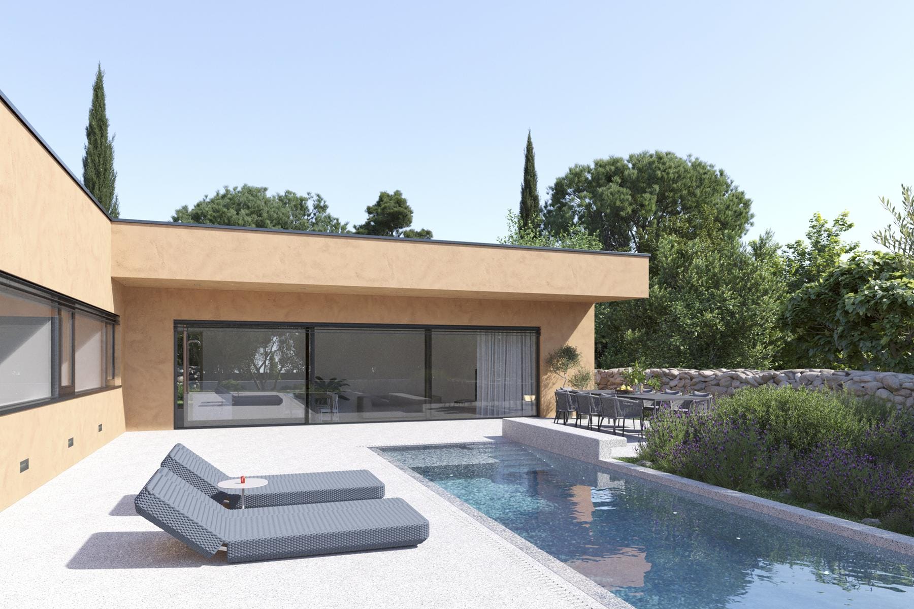 Къщата се характеризира с отлична разпределение на помещенията и елементи, благоприятстващи релаксацията, като собствен басейн с площ 42 м². Недвижимостта е разположена сред малко на брой къщи, което гарантира тишина и уединение. Това предложение е идеално за хора, които ценят спокойствието, стила и близостта до природата. Това място може да бъде както удобен дом за постоянно живеене, така и атрактивна ваканционна инвестиция.