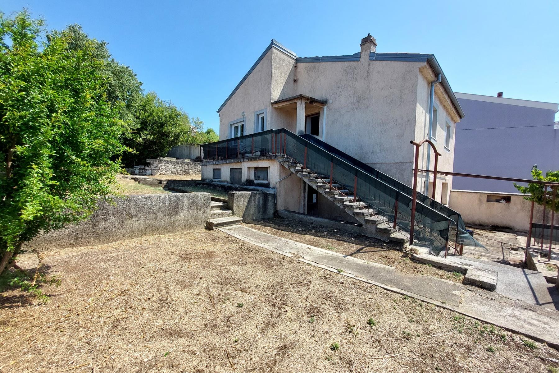 Просторна, самостоятелна жилищна сграда, разположена само на няколко минути пеша от центъра на града. Домът е идеално предложение за хора, търсещи имот с възможност за собствена аранжировка. Компактната структура включва две отделни жилищни единици, достъпни от външна стълбищна клетка. Долният апартамент се нуждае от ремонт и адаптация според предпочитанията на бъдещите обитатели, докато горната част е напълно обновена, позволявайки незабавно нанасяне или отдаване под наем. Обектът предлага широк спектър от възможности за използване както като многофамилен дом, така и като инвестиция, генерираща приходи. Значително предимство е и просторната градина и гаражът, които значително повишават комфорта на живот и функционалността.