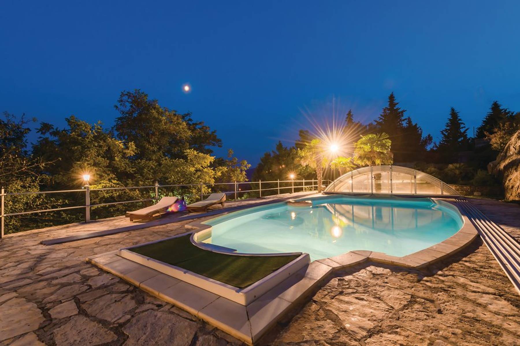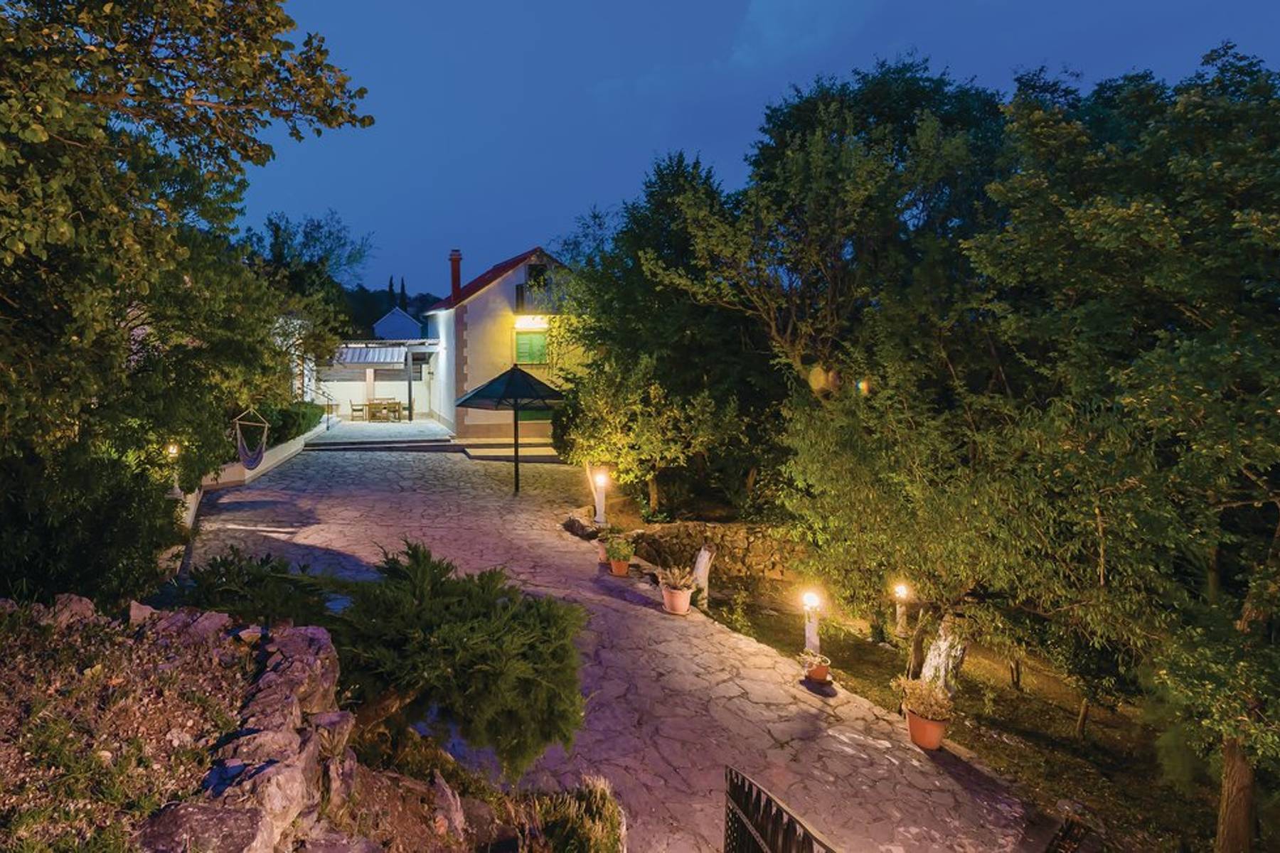 Оазис на спокойствието, където времето тече по-бавно, създаден на живописните хълмове около Дрниш в Хърватия. Традиционната къща е построена от камък, в съответствие с местния стил и с внимание към всеки детайл. Просторният имот впечатлява с естествената си околна среда и близостта до исторически и природни забележителности на региона. Типичният средиземноморски климат гарантира топли, слънчеви дни през цялата година. Дъхът на свеж въздух, гледката към меките хълмове, покрити с маслинови дървета, и красивите пейзажи приканват към почивка и общуване с природата.