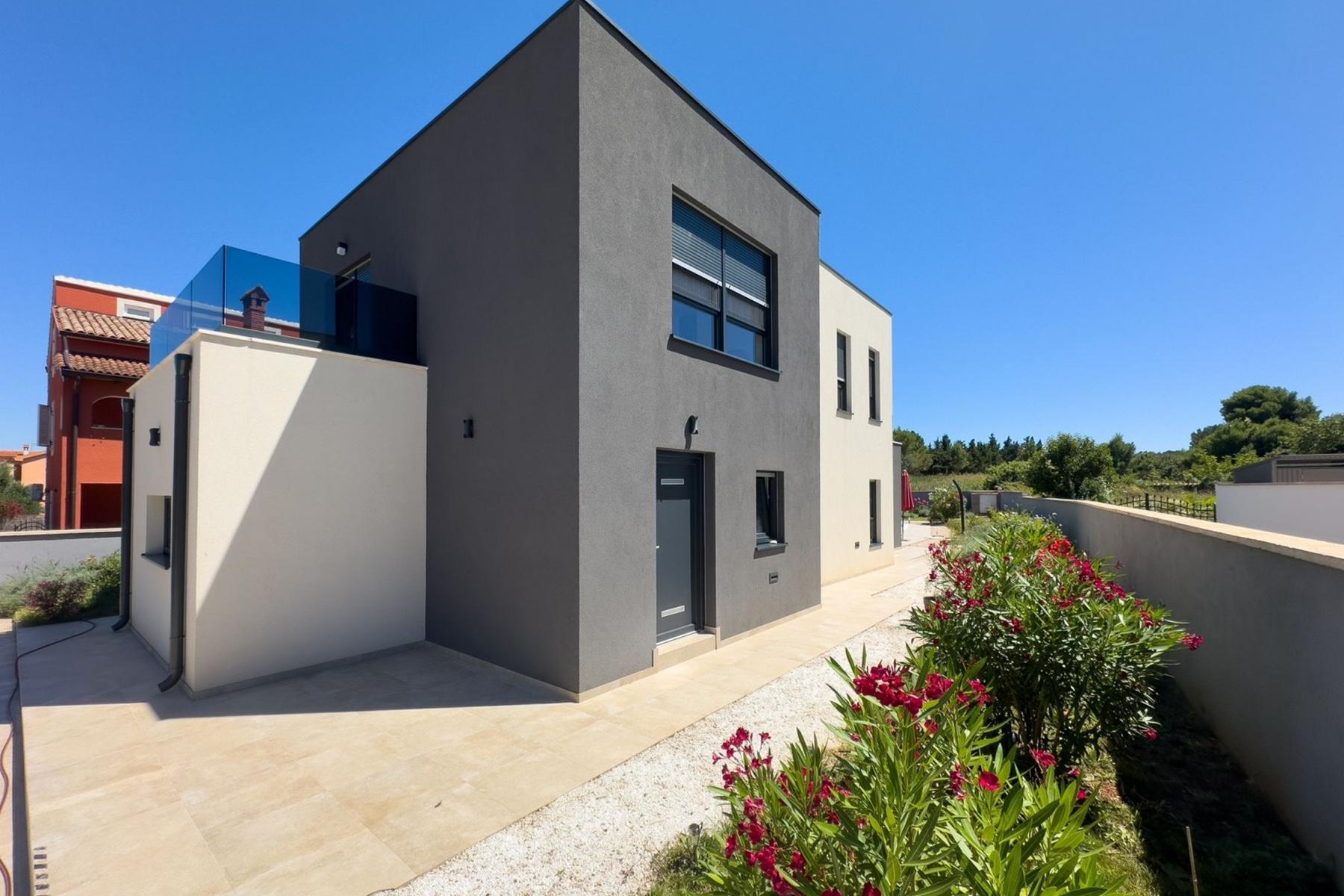 Представеният имот е модерен, просторен дом с площ от 180 м², разположен в южната част на полуостров Истрия, в очарователното градче Лижнян. Къщата се отличава с изчистена, но същевременно елегантна архитектура, която се вписва хармонично в атмосферата на околността. Сградата е разпределена на два етажа, което позволява максимално използване на наличното пространство и удобство за обитателите.