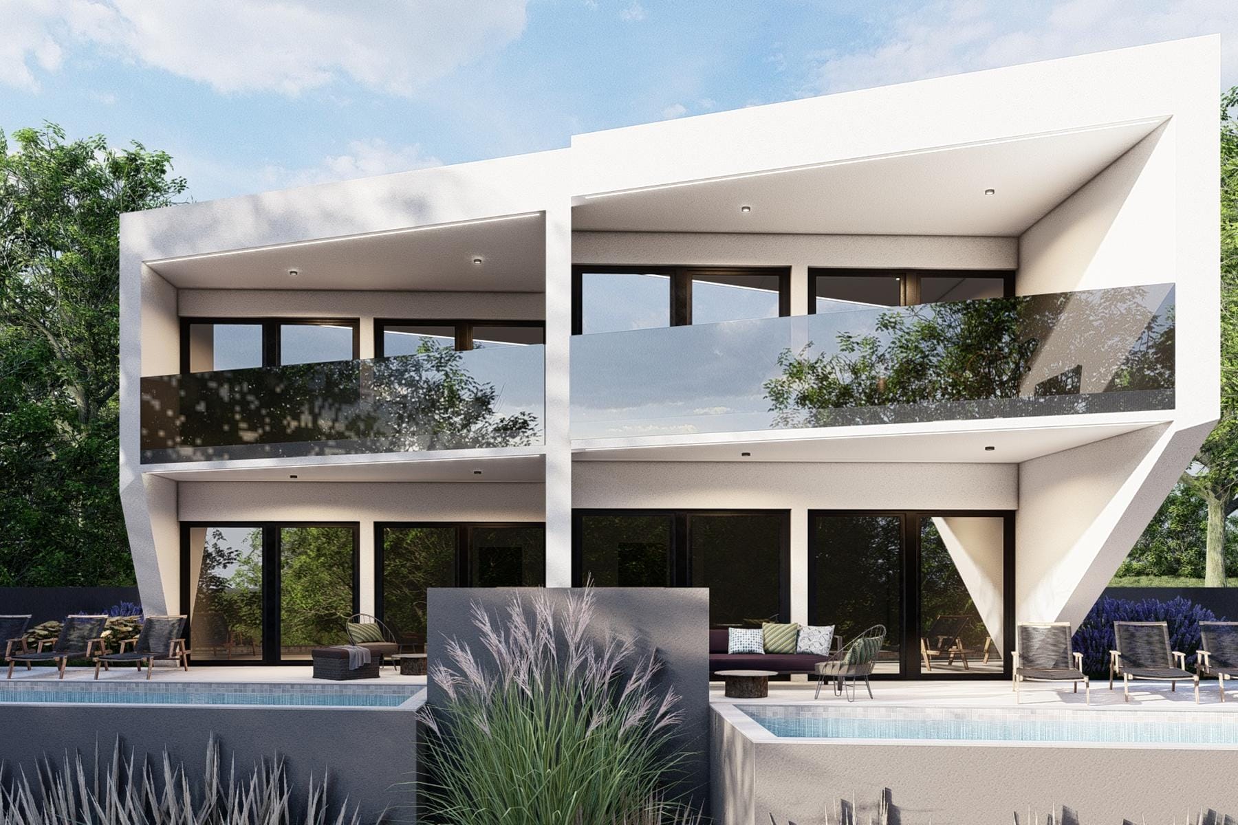 Представеният имот е дом с модерен характер, който предлага много възможности за аранжиране. Намира се върху парцел с площ 320 м², което позволява свободно организиране на външното пространство и осигурява уединение. Сградата разполага с четири просторни стаи и четири бани, което я прави отлично пригодена за нуждите на по-голямо семейство или хора, желаещи да приемат гости.