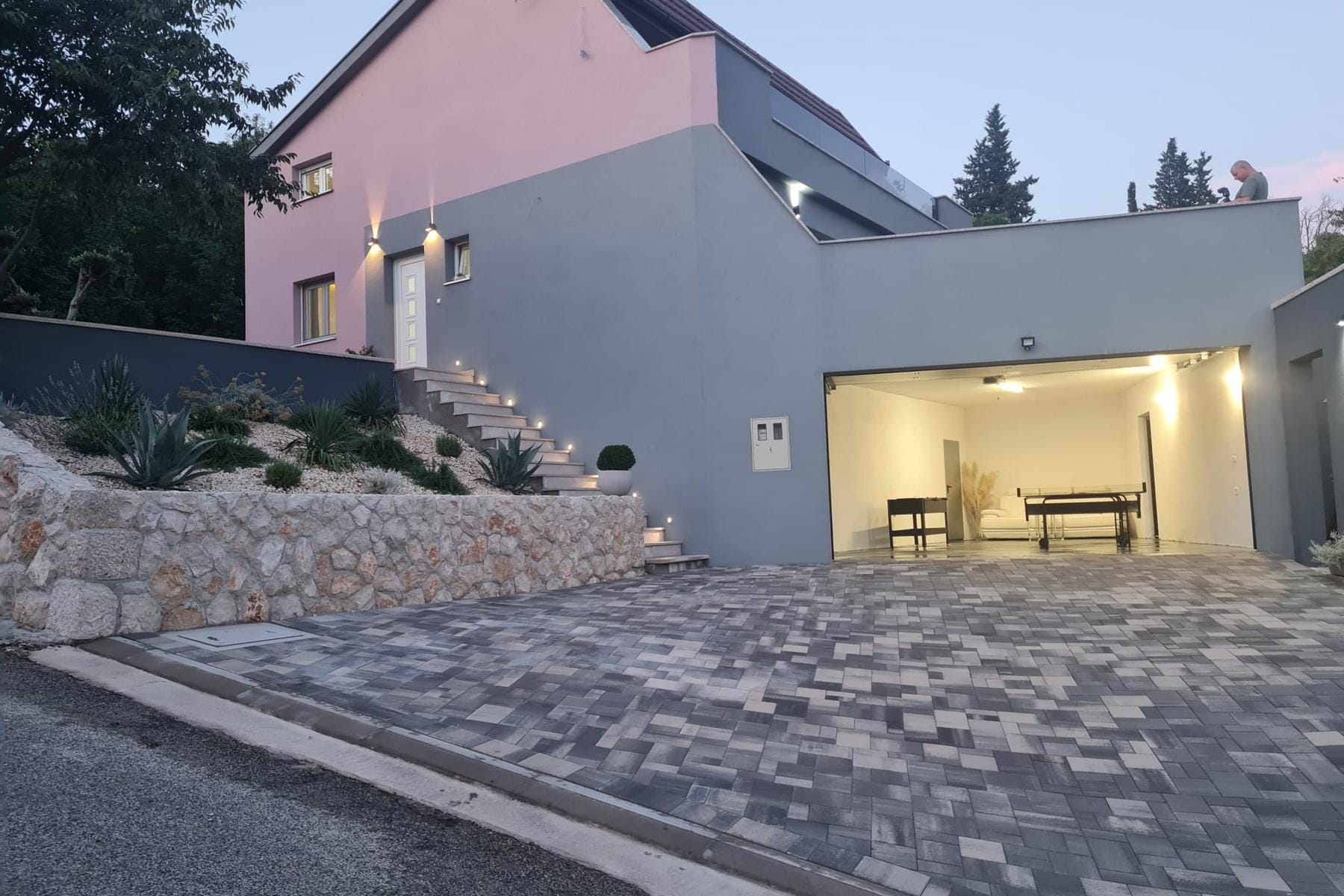 На хълм близо до Имотски се намира тази луксозна вила, която впечатлява с простор и комфорт. Сградата има три етажа и предлага 220 квадратни метра полезна площ. Домът е създаден с мисъл за пълен отдих и хармония с природата, което подчертават големите прозорци и лесният достъп до терасата. Интериорът е проектиран така, че естествената светлина да изпълва дневното пространство, което благоприятства релаксацията и срещите с близки и приятели.