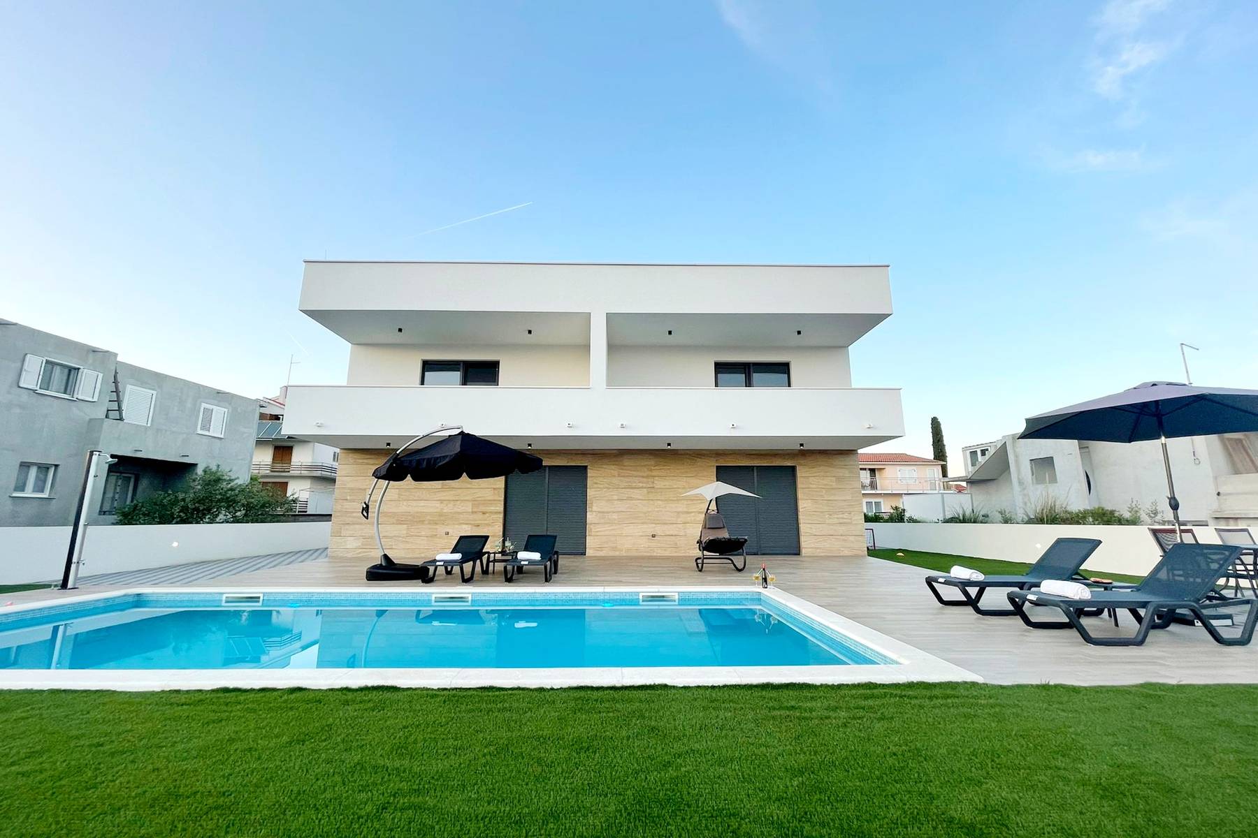 Модерната вила е проектирана с мисъл за комфорта на жителите и най-високите изисквания. Функционалността на сградата върви ръка за ръка с високия стандарт на завършване и ергономията на пространството. Обектът позволява индивидуално използване на всеки метър, създавайки както общи зони, така и уединени места за почивка.