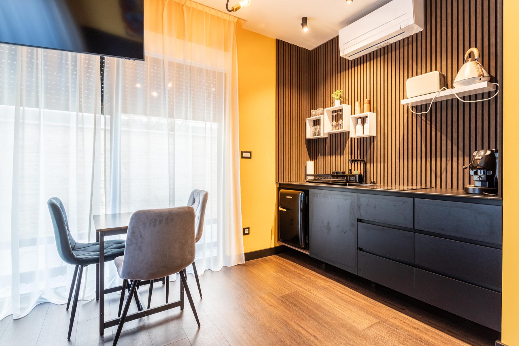 Интериорите са проектирани с внимание към детайла, поддържайки високо качество на материалите и прецизност при изпълнението. Широките прозорци се отварят към красиви гледки, въвеждайки много светлина в помещенията. Благодарение на разделението на няколко жилищни единици е възможно лесно адаптиране на пространството според собствените нужди – както като семеен дом, така и като имот предназначен за отдаване под наем. Басейнът и терасата на покрива са допълнителни предимства, които повишават комфорта на живот в това място и осигуряват идеално пространство за релакс на открито.