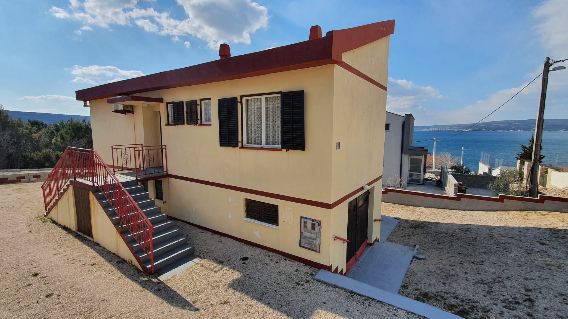 За продажба атрактивна къща, която впечатлява не само с местоположението си, но и с приказните гледки към морето. Разположена в сърцето на Новиград, този просторен имот създава отлични условия за създаване на мечтано място за живеене. Имотът се нуждае от ремонт, което от своя страна представлява възможност за адаптиране на интериора според личните нужди и вкус. Къщата се характеризира с обширно разпределение на помещенията, което със сигурност ще удовлетвори разнообразните потребности на обитателите. На приземния етаж се намират функционални стаи, баня и покрита тераса, която е идеална за релакс. Външни стълби водят до първия етаж, където има комфортен апартамент. Живописната околност и близостта до морето правят покупката на този имот отлична инвестиция с добри перспективи. Имотът с площ 196,71 м² върху парцел от 502 м² предлага много възможности – от условия за отдих до пространство за семейни активности.