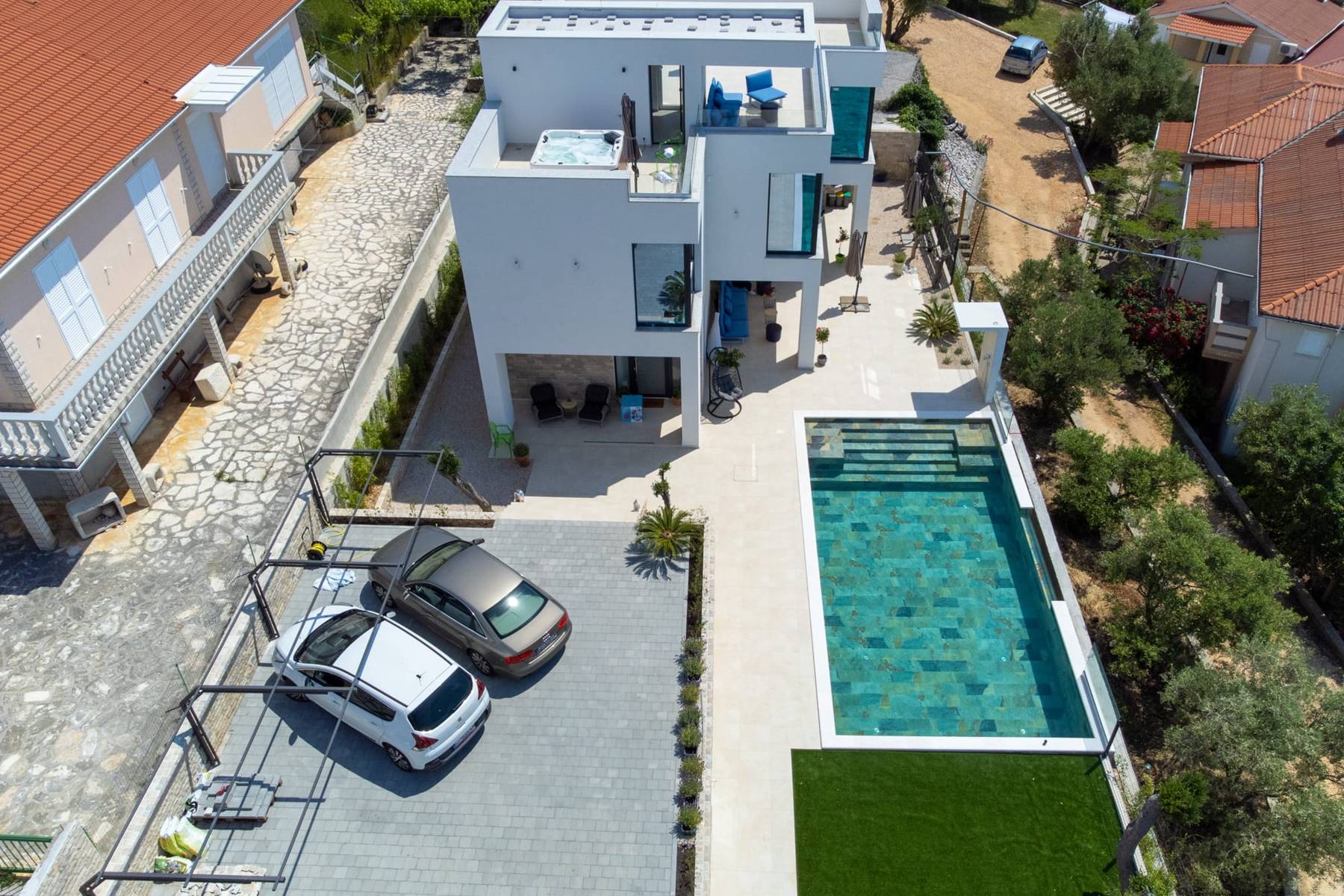 Партерният етаж включва просторна дневна, свързана с кухня и трапезария, което насърчава съвместното прекарване на време в удобна и светла обстановка. Наличието на баня на този етаж увеличава практичността на пространството. На първия етаж са разположени три спални и четири луксозни бани, както и сауна, която позволява възстановяване след активен ден. Обширната тераса на покрива осигурява ненарушени гледки към околността и морето, които впечатляват във всяко време на деня.