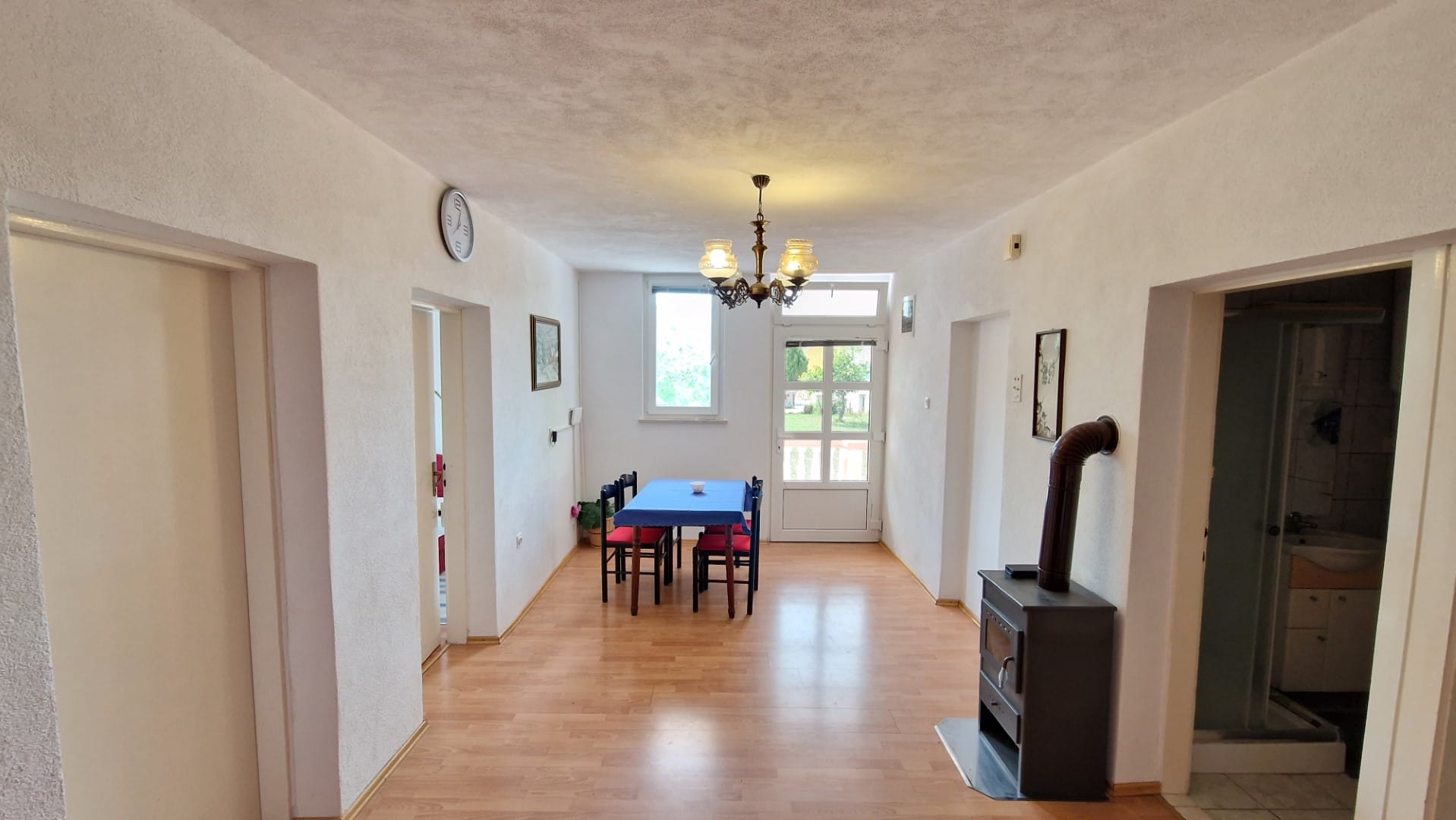 Площта на парцела е 297 м², а центърът на селото е само на 2,6 км разстояние. Сградата е построена от тухли и е преминала последен ремонт през 2015 година. Интериорът е завършен с плочки и ламиниран паркет, а PVC прозорците осигуряват отлична изолация. В избата има дървена печка, която повишава топлинния комфорт. Четири климатика, монтирани в цялата къща, правят живота по-приятен за обитателите, а имотът е напълно свързан към инфраструктурата, което го прави привлекателно място както за живеене, така и за отдих.