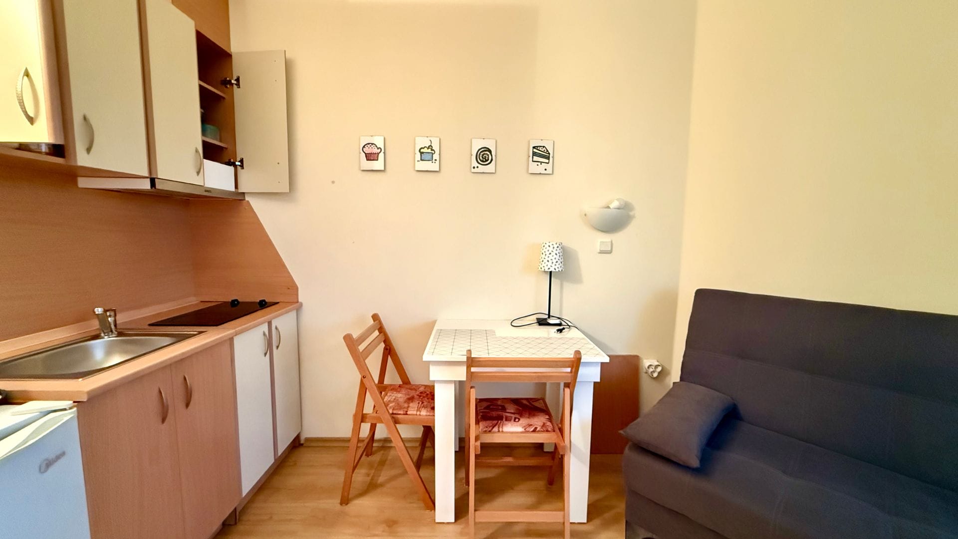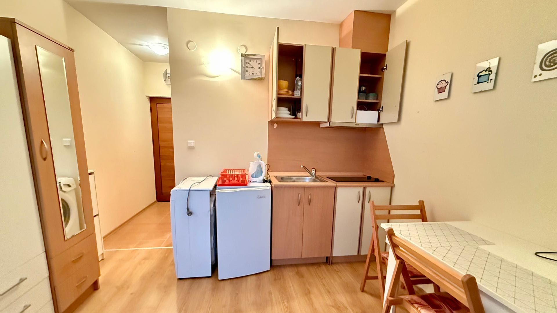 Умела инвестиция в имот с отлично местоположение на българското крайбрежие. Апартаментът се състои от една просторна стая, която обединява кухня, трапезария и зона за отдих. На разположение са баня и функционална тераса. Допълнителните предимства включват: