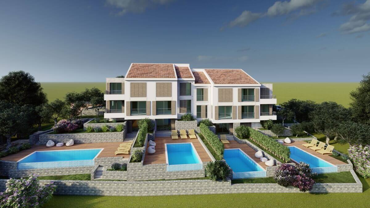 Ексклузивен жилищен проект в Будва, Черна гора, привлича любителите на лукса и природата. Разположени на живописно място, домовете предлагат отлично съчетание на модерност с класически дизайн. Изключителни 4 къщи, всяка с площ около 220 м2, се намират в една сграда и предлагат избор между 3 или 4 просторни спални. Впечатляващата гледка към залива и величествените планини гарантират незабравими моменти на релакс и съзерцание. Локацията осигурява деликатна уединеност, като същевременно е само на 15 минути от центъра на оживената Будва. Освен това, само 500 метра разделят имота от Адриатическо море, което го прави идеално място за любителите на морския бриз и плажния отдих.