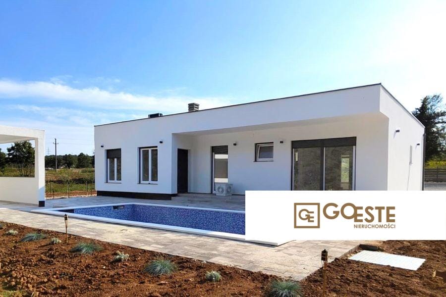 Продава се новопостроена ваканционна къща с басейн, разположена в красивия Лабин, регион на Хърватия. Този изключителен имот с площ от 137 м² впечатлява с модерен дизайн и комфорт. Къщата се състои от три спални, всяка от които е оборудвана с баня, както и просторна отворена дневна зона с хол, кухня и трапезария. Освен това, достъпът до терасата и басейна осигурява директна връзка с външното пространство, където има зидана беседка с лятна кухня и грил. Идеално място за релакс и отдих в компанията на семейство или приятели. Комфортът се гарантира от климатизация и подово отопление в модерните бани. Голямата градина предлага възможности за оформление, а безпроблемният паркинг за три автомобила улеснява ежедневието. Къщата се продава в строителен стадий, което дава свобода за персонализация на интериора.
