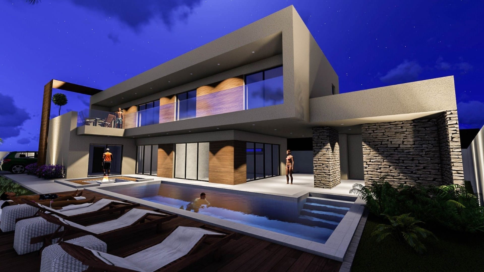 Вилата е проектирана в модерен стил, отличаваща се с елегантност и комфорт, предлага луксозни условия за живот в спокойната околност на Затон. Просторният партер включва светла дневна с кухня и трапезария, спалня с баня и допълнителни помещения, които увеличават функционалността на това изключително място. Интериорът е внимателно планиран, а ключови елементи като електрически щори и климатизация осигуряват удобство през цялата година. На първия етаж са разположени три удобни спални, всяка от които разполага със собствена баня и достъп до тераса, предлагаща идеално място за отдих. Парцелът с площ 615 м² включва впечатляващ басейн, който е централна точка на околността, както и две паркоместа. Ниските експлоатационни разходи и липсата на данък при прехвърляне на собственост правят това предложение още по-привлекателно.