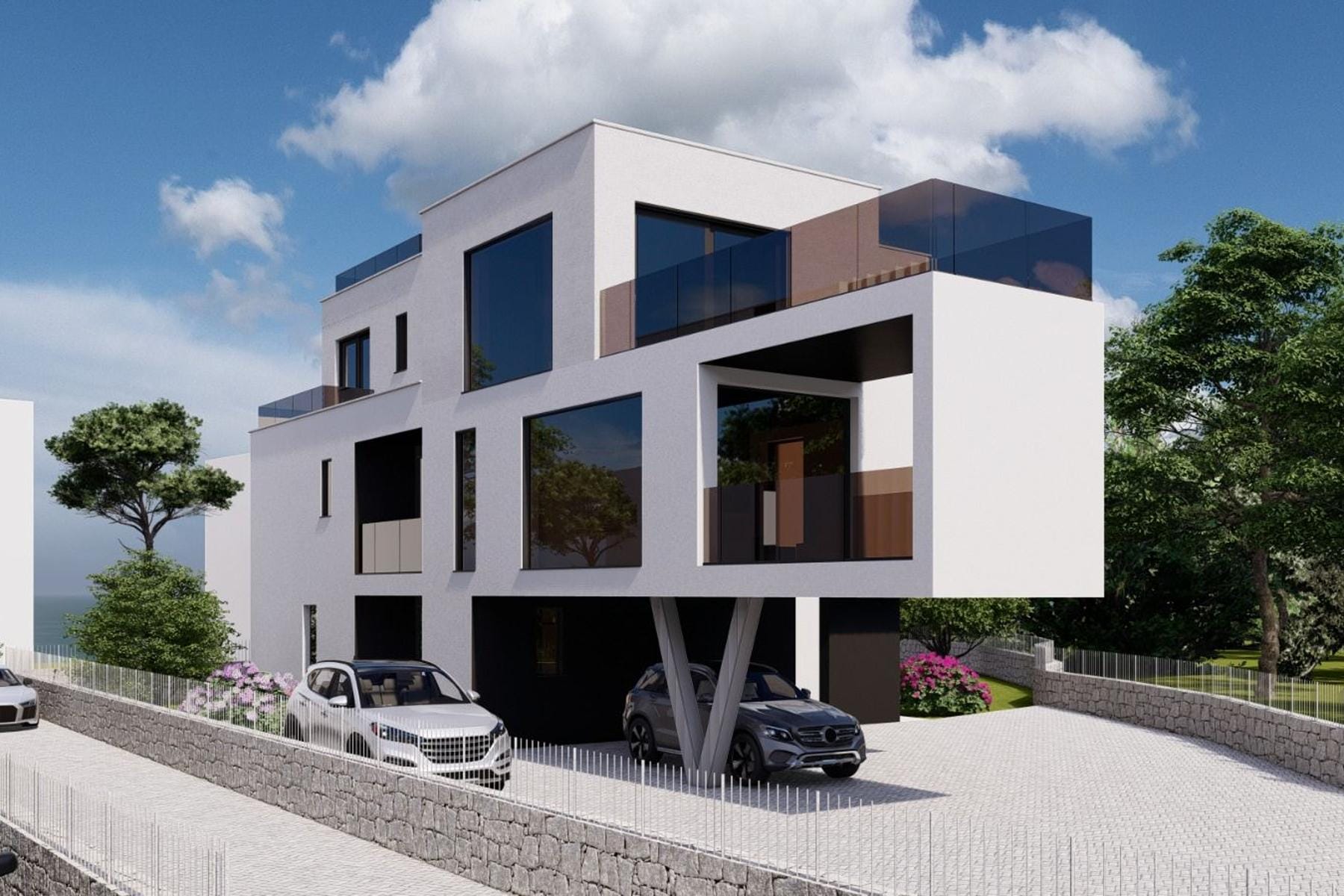 Офертата включва три парцела с обща площ 1 698 м², разположени в населено място Нивице на остров Крък. Територията е леко наклонена на юг, което благоприятства добрите слънчеви условия. Всеки от парцелите позволява изграждането на самостоятелна къща с четири жилищни единици, което създава интересна инвестиционна възможност или възможност за лично ползване.