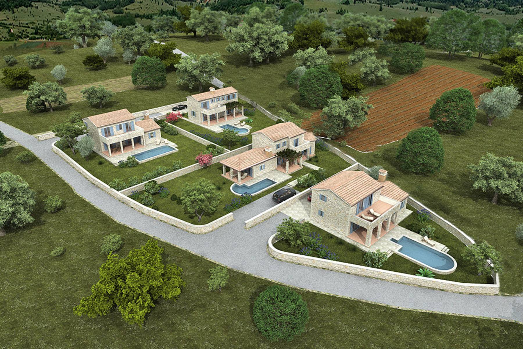 Проектът е базиран на стила на каменните истриански вили, които хармонично се вписват в характера на региона. Близостта до малък, оживен град осигурява всички необходими удобства на една ръка разстояние. Магазини, кафенета и ресторанти предлагат комфорт, без да нарушават местния мир. Това е предложение за хора, търсещи комфорт и природни качества.