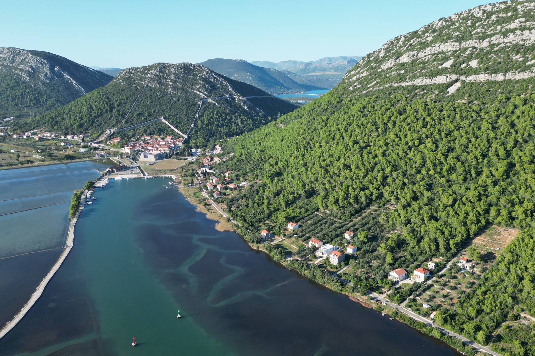 Този изключителен имот представлява голям парцел, разположен на първа брегова линия в района на прочутия град Стоун в южната част на Хърватия. Територията обхваща над 21 хиляди квадратни метра и предлага уникална гледка към морето и контакт с природата. Имотът има достъп до обществен асфалтиран път, което улеснява комуникацията. В околността на парцела са налични всички основни комуникации, което създава удобни условия за инвестиция или частна резиденция. Парцелът е разделен на два имота с дължина около 580 метра всеки, с фронт широчина около 37 метра. По-голямата част от терена се намира в границите на зона за застрояване, което дава възможност за реализиране на различни проекти.