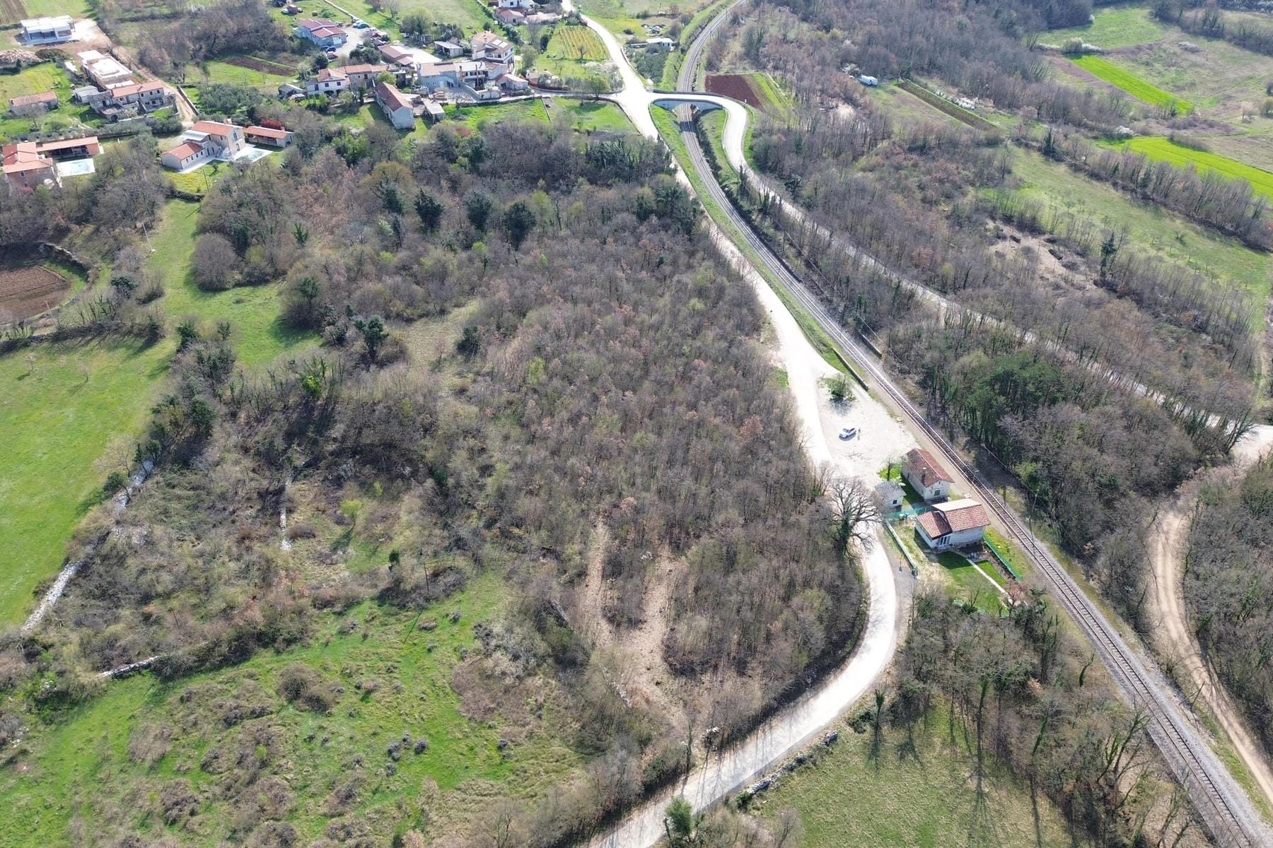 Поради местоположението и формата на парцела съществуват много възможности за адаптация на терена. Имотът има неправилна, триъгълна форма, което позволява интересни архитектурни решения. Околността, изпълнена със зеленина и гледки към естествени пейзажи, повишава инвестиционната стойност на този терен. Това е атрактивно предложение за хора, търсещи тишина и същевременно достъп до центъра на Истрия и местните услуги.