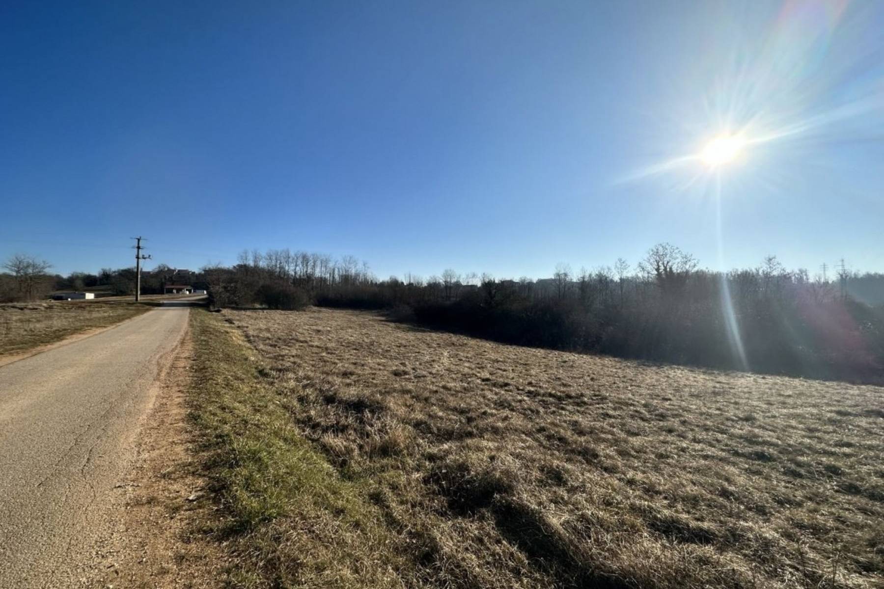 Просторен парцел с площ почти 3700 м² се намира близо до малкото населено място Каройба, известно с живописните пейзажи на Истрия. В близост има главен асфалтиран път, който осигурява удобен достъп, както и втори местен път. Имотът се състои от две части: зона за застрояване с размер около 2400 м² и прилежащ земеделски терен с площ около 810 м². Цялата площ е равнинна и добре поддържана, което значително улеснява планирането на инвестицията. Територията е с пълна собственост, което гарантира сигурност на сделката. Наличието на комуникации като вода и електричество на кратко разстояние улеснява бързото свързване на инсталациите.