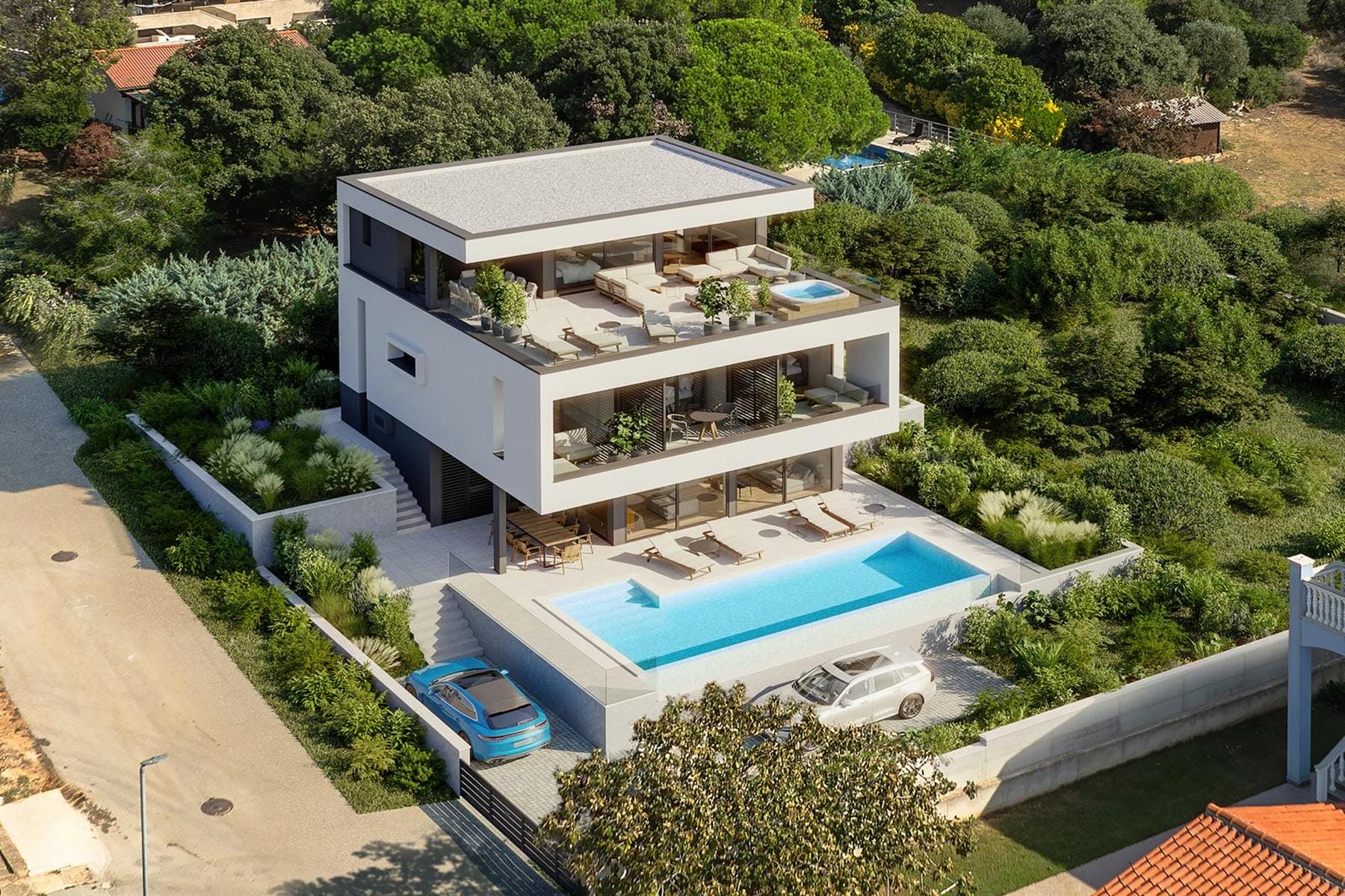 Предлаганият парцел представлява идеално място за реализиране на мечтаната инвестиция в Медулин. Парцелът отговаря на изискванията както по отношение на площта, така и на условията за застрояване. Достъпът до комуникации позволява започване на строителството без излишни усложнения. Проектът на дома предвижда три нива, които могат да бъдат адаптирани според личните нужди. Локацията осигурява тишина и близост до морето, което повишава комфорта на живот и стойността на имота.