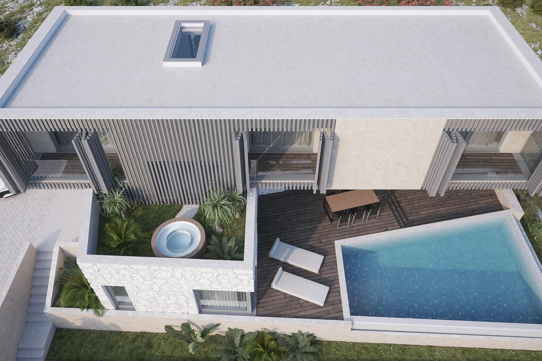 Проектът на вилата позволява пълно използване потенциала на парцела, създавайки пространство както за релакс, така и за социални срещи. Инвестицията дава възможност за оформяне на градина и зона за отдих около басейна, което значително повишава привлекателността на това място. Достъпът до главния път улеснява комуникацията и осигурява удобство при ежедневната употреба.