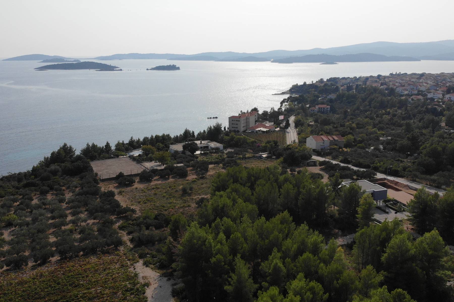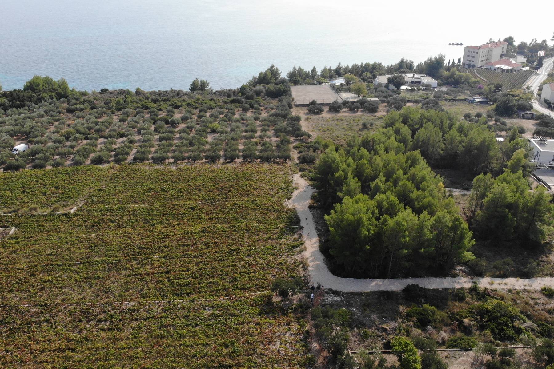 Околността на парцела е заобиколена от обширни лозя, които създават очарователен пейзаж с изглед към безкрайните сини води на Адриатика. Благодарение на това местоположението съчетава природна красота с функционалност. Пътят за достъп минава директно до парцела, което значително улеснява транспорта и ежедневното придвижване.