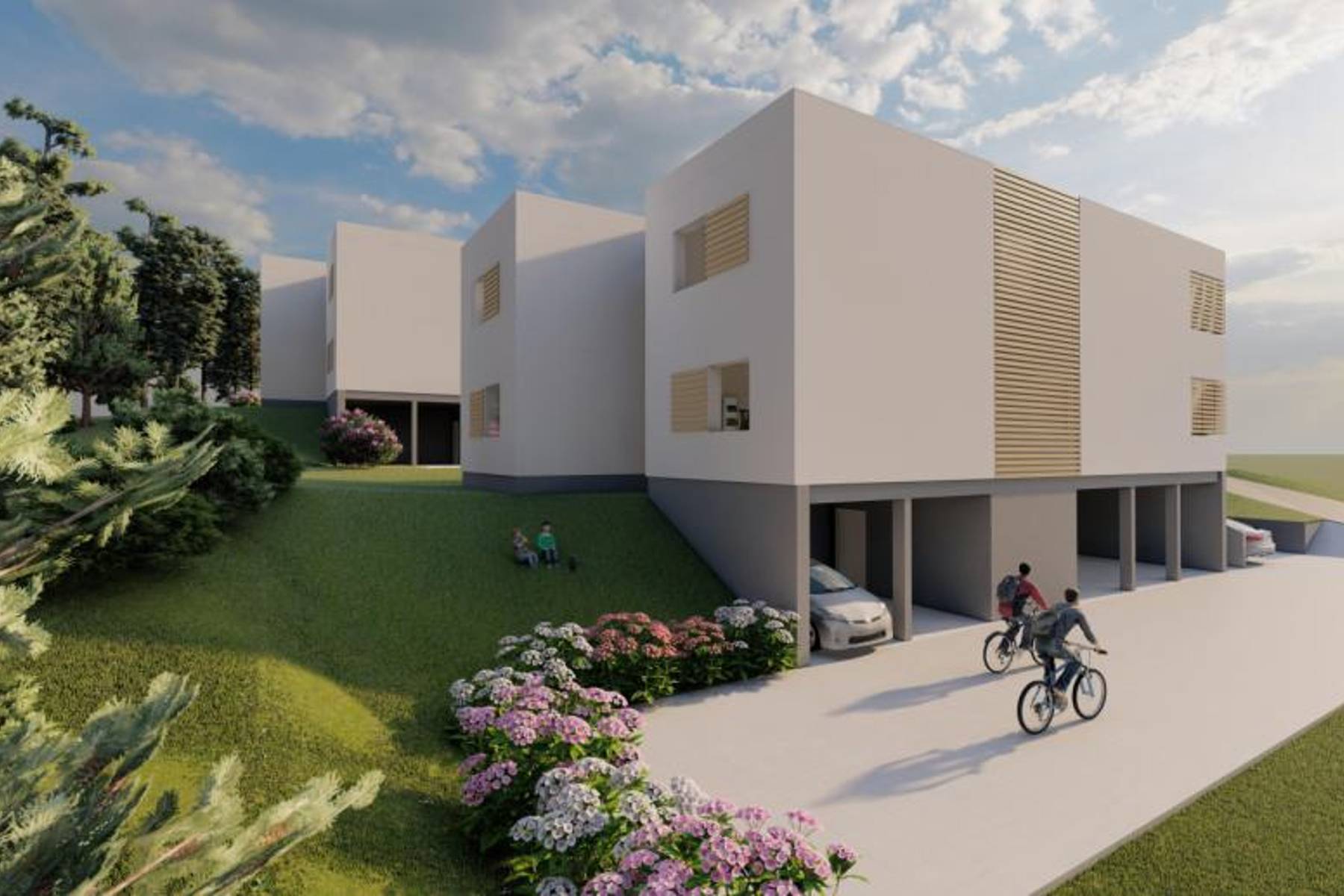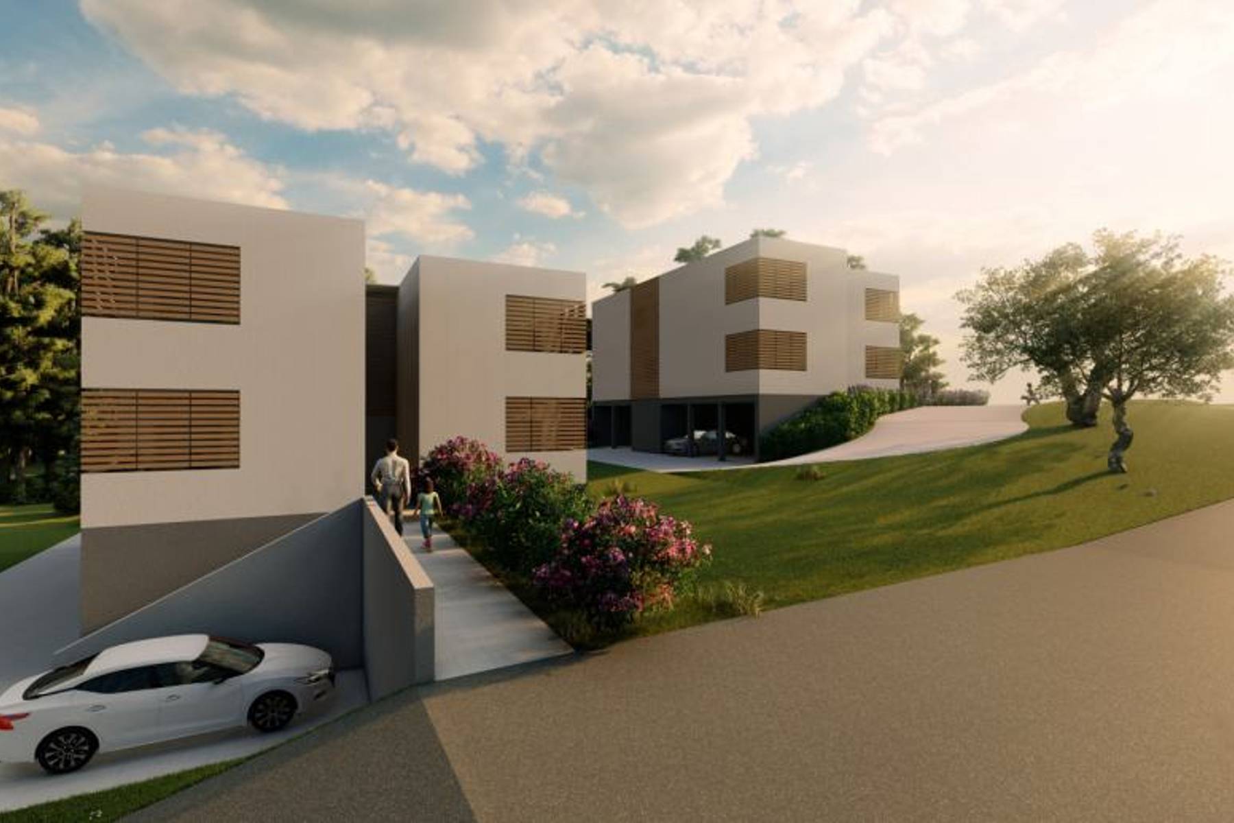 Офертата се отнася за строителен парцел с площ 846 м2, разположен в спокойната част на Медулин. Локацията благоприятства комфортния живот, осигурявайки тишина и съседство със зеленина. Парцелът разполага с валидно разрешение за строеж на четири самостоятелни апартамента, които ще бъдат реализирани съгласно проекта. Два жилищни блока са проектирани на партерния етаж, като единият е с площ 74,94 м2, а другият – 71,59 м2. Подобни апартаменти са разположени и на първия етаж, предлагайки същите размери. Проектирани са и две паркоместа, достъпни за собствениците на апартаментите.