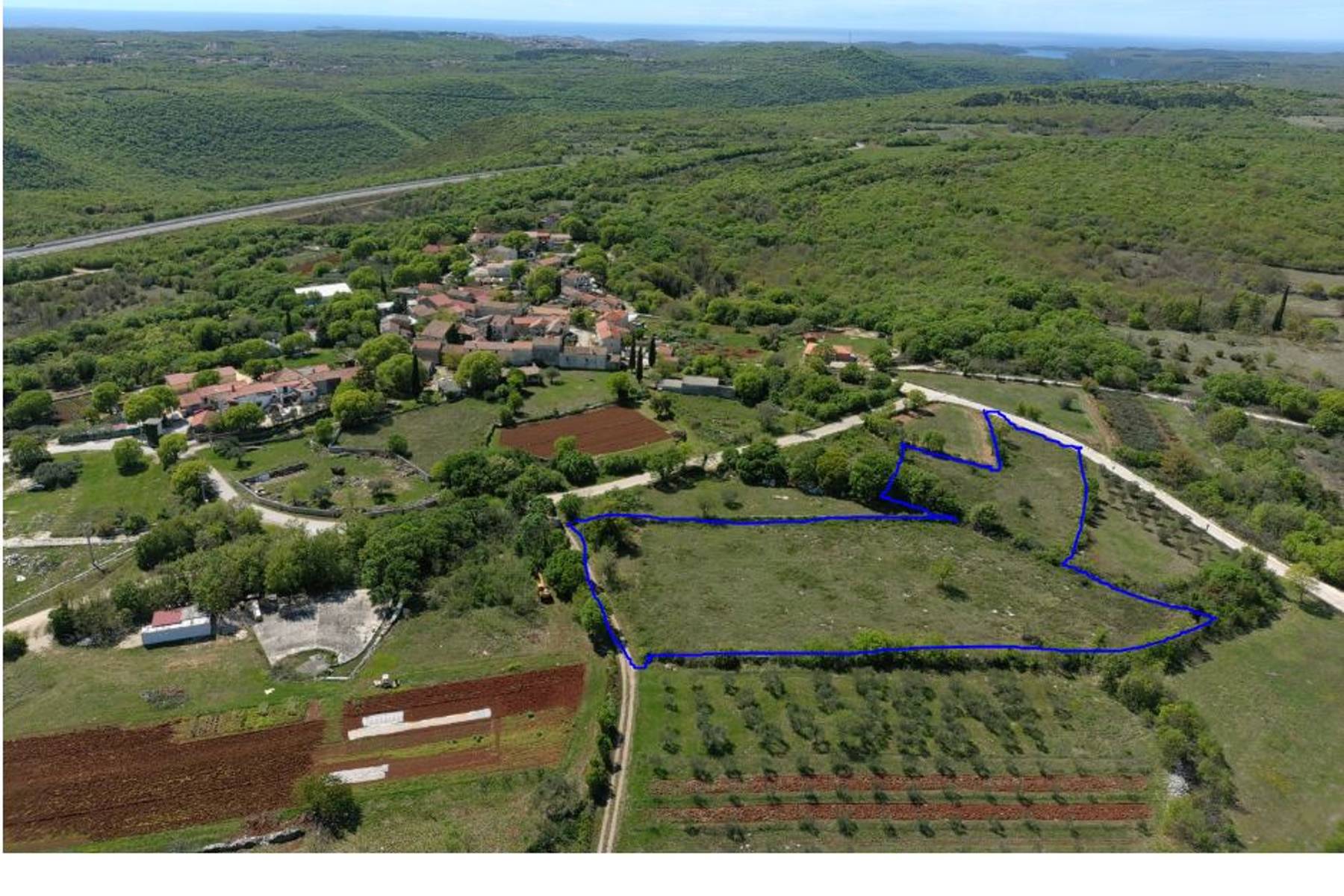 Представеният имот е рядка инвестиционна възможност, разположена в живописния район на Истрия. Площта на обширния парцел надхвърля 8500 квадратни метра. Естествената красота на околността съчетава гъсти зелени площи с лазурните води на близките водоеми. Спокойната селска атмосфера приканва към отдих и създаване на мечтано място за собствен дом или туристически проект. Имотът се намира в близост до населено място с богата история и изразителен характер, което през цялата година привлича гости с пейзажи и култура.