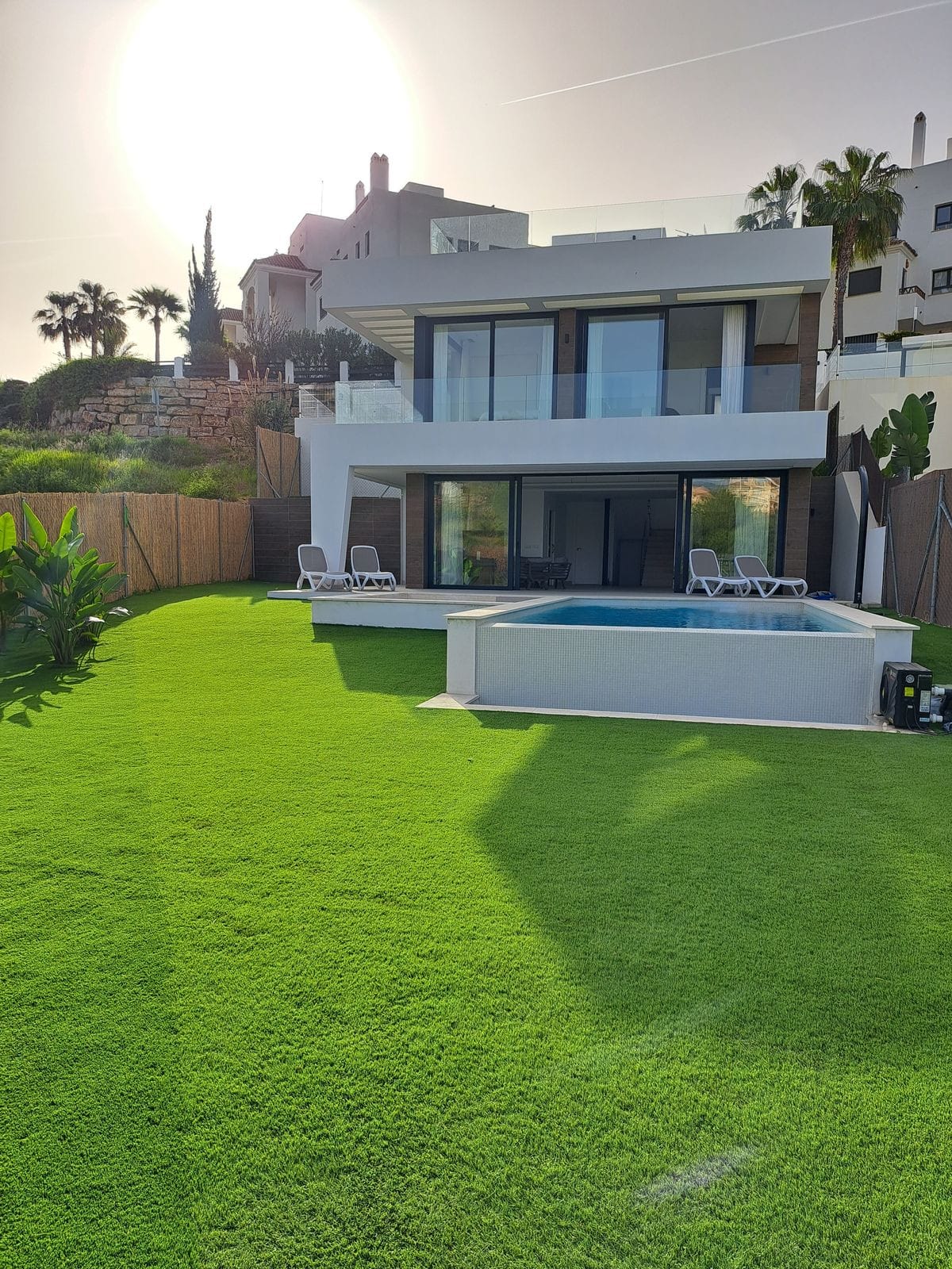 Представяне на изключителен самостоятелен дом, който преосмисля понятието за лукс в Испания. Тази модерна вила с площ от 250 м², разположена в престижна локация, предлага не само простор, но и ненадминати гледки към голф игрището и планините. Оборудвана с четири спални и три елегантни бани, тя осигурява възможност за комфортен живот за семейството. Личният басейн, напълно отопляем, се превръща в идеално място за релакс. Освен това огромният сутерен предоставя безкрайни възможности за оформление. Този имот е наистина фантастична инвестиция в живописен район.