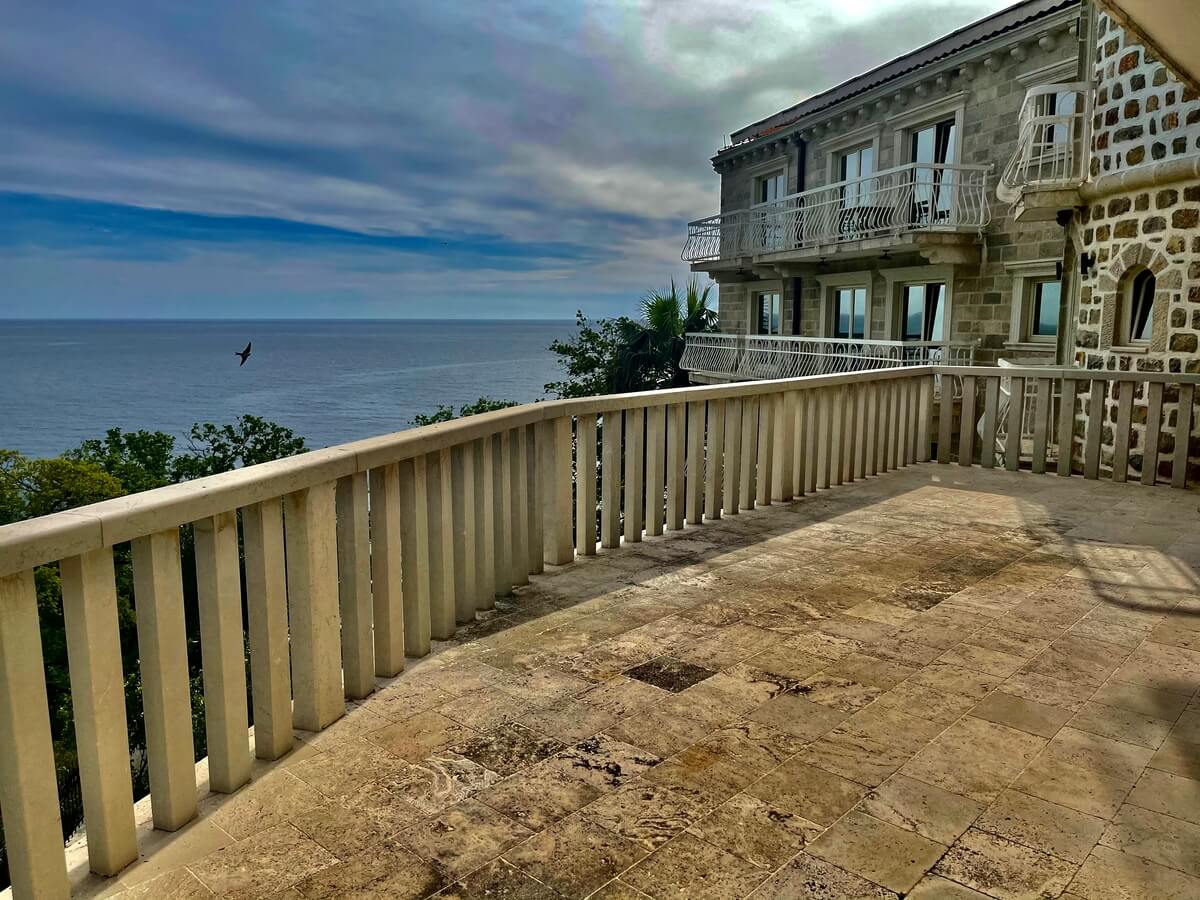 Ексклузивна оферта за любителите на крайморския комфорт. Имотът се намира само на 30 метра от красив и спокоен плаж в Будва, Черна гора. Удобното пространство с площ от 1300 м2 осигурява комфортна почивка и отлични условия за инвестиция. Вилата се състои от девет апартамента: шест с две спални и три с една спалня. Посетителите могат да се възползват от два басейна, ресторант и други изключителни удобства.