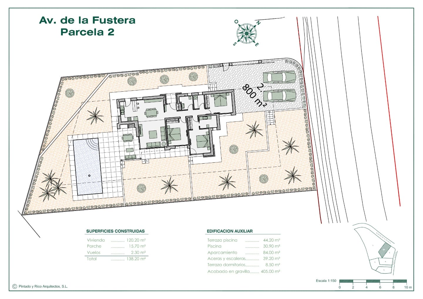 Предлаганата вила има площ от 138 м² и е разположена на парцел с площ 800 м². Разпределението на пространството включва: