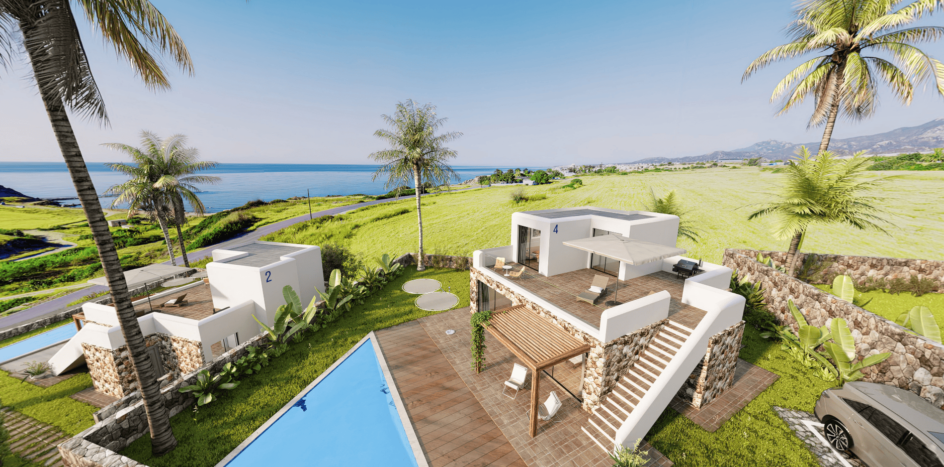 На живописното северно крайбрежие на Кипър, в очарователното село Есентепе, ви очаква изключително предложение за любителите на луксозни интериори и близост до незасегната природа. Елегантните вили сбъдват мечтата за морски живот с пълен комфорт. Всяка от 14-те вили се отличава с добре обмислен проект с три спални, просторна тераса на покрива и възможност за добавяне на частен басейн. В обкръжението на средиземноморска растителност комплексът е разположен на два етажа, предлагащ спиращи дъха гледки към морето. Предлаганото пространство дава възможност за релакс и контакт с природата, като същевременно осигурява лесен достъп до близкия плаж. Регионът изобилства от уютни ресторанти, където можете да се насладите на кулинарното разнообразие от различни националности.